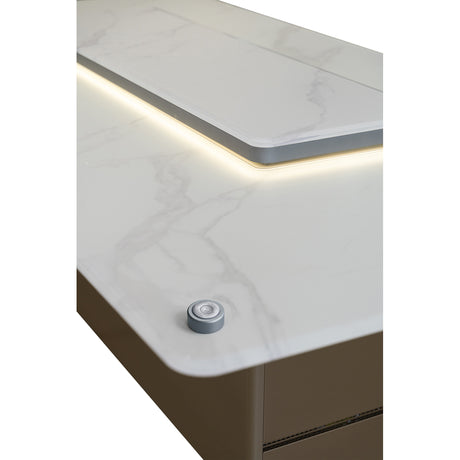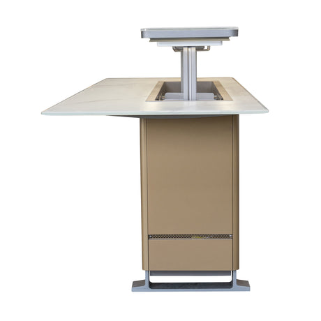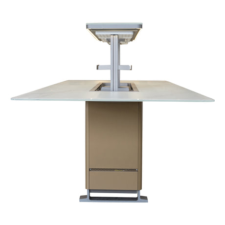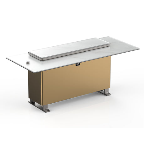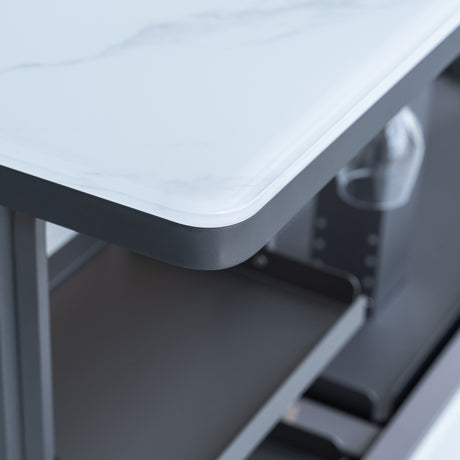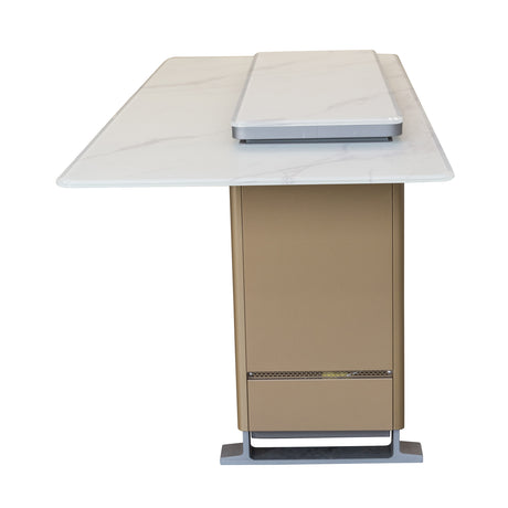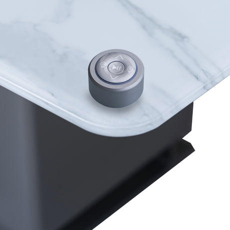 Cinetico Smart Dining Table in White, 5.3 cu.ft fridge and freezer with Bluetooth control