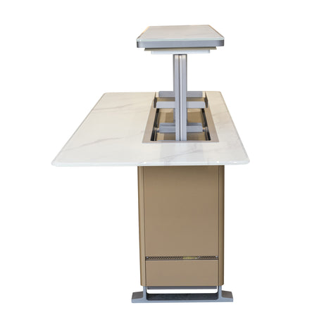 Elevato Smart Bar Table in White, 5.3 cu.ft fridge and freezer with Bluetooth control