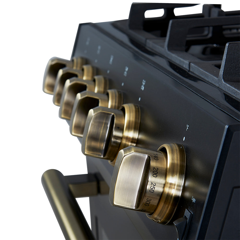 The Forno Leonardo 30" gas range in black combines modern design with professional-grade performance. Its powerful cooktop delivers 39,500 BTU across continuous cast iron grates, providing stability and effortless cookware movement. The deep recessed black enamel surface simplifies cleanup, keeping spills contained. The spacious 5.0 cu. ft. convection oven offers 22,500 BTU of broil and bake power, with two adjustable rack heights and a high-powered convection fan for even heat distribution. Designed for reliability, the auto re-ignition feature ensures consistent performance, while natural gas compatibility and an included propane conversion kit provide flexible installation options.
