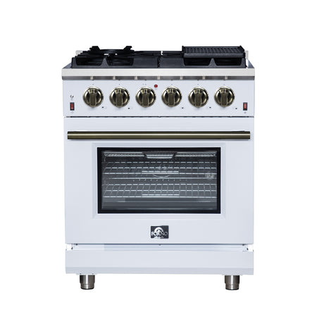 Forno Massimo 30-Inch White Freestanding Gas Range, 5 Burners, True Convection Oven