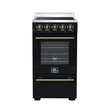 Forno Pallerano 20 Inch Freestanding Electric Range in Black with Antique Brass, Compact Design