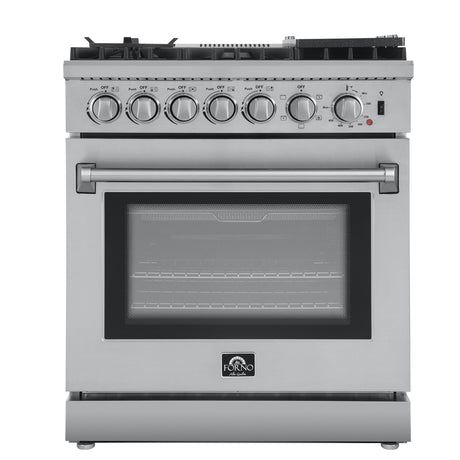 Forno Lazio 30-Inch Freestanding Dual Fuel Range, 4 Burners, True Convection Oven