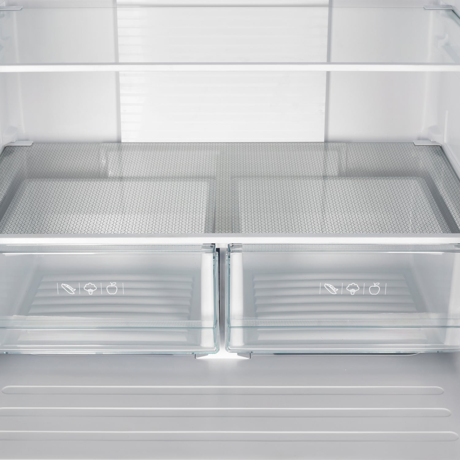 The Forno Gallipoli 31 Inch Stainless-Steel French Door refrigerator combines style and functionality with its frost-free multi-air flow cooling system, offering a spacious 17.5 cu.ft. capacity. Adjustable shelving ensures versatile grocery storage, complemented by a compressor inverter for energy efficiency, quiet operation, and precise temperature control. The LED touch panel provides convenient access and control. The fresh food storage (12.4 cu.ft.) features three glass shelves (two adjustable), two crisper drawers, and ample door storage. The 5.1 cu.ft. freezer boasts organized storage with one pull-out drawer that contains 2 drawer, a removable ice bucket and a high-capacity automatic ice maker producing up to 4 pounds of ice daily. This refrigerator is ENERGY STAR Certified for efficiency, and high-efficiency LED lighting minimizes food spoilage.