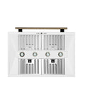 This 36 Inch Wall-Mounted Range Hood in white is designed for high-performance kitchen ventilation. With a powerful 1200 CFM motor and 4-speed fan control, it removes smoke, grease, and cooking odors. Designed for ducted installation, the vertical upward air discharge ensures efficient airflow, while features like automatic shut-off, a built-in timer, and removable charcoal filters make it convenient to use and maintain. The included chimney extension kit and decorative crown molding allow for a custom, built-in look. Quiet operation at just 68 dB with built-in lighting for better visibility while cooking.