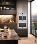 The Forno Asti 30” Double Wall Oven combines elegance and performance with a French-door top oven for effortless, one-handed access. Featuring 7.36 cu. ft. of true convection cooking, it ensures even heat distribution for perfect baking results. The built-in air-fry function delivers crispy textures with minimal oil, while precision control knobs provide a hands-on approach to cooking. A digital LED display offers seamless management of the timer and Sous Vide function, enhancing precision and versatility. Designed for convenience, the self-cleaning mode simplifies maintenance, keeping your oven spotless with minimal effort.