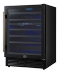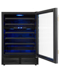 Forno Bacchino 24 Inch Wine Cooler, Black with Antique Brass Handles, with LED Lighting, Triple Glass Door, 51 Bottle Capacity, Built-In or Freestanding