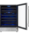 Forno Bacchino 24 Inch Wine Cooler, Stainless Steel, with LED Lighting, Triple Glass Door, 51 Bottle Capacity, Built-In or Freestanding