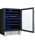 The Bacchino 24 Inch Wine Cooler offers a flexible design that can be built-in or freestanding, making it a perfect fit for any kitchen or home bar. With dual temperature zones, it stores up to 51 bottles at optimal conditions ranging from 40°F to 65°F. Triple-layer anti-UV glass doors protect your collection, while stainless steel construction with a fingerprint-resistant finish ensures long-lasting durability. Telescopic shelves, charcoal filters, and a quiet compressor cooling system provide both convenience and performance for serious wine enthusiasts.