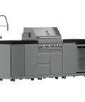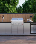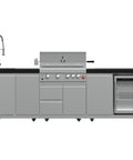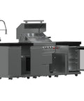 Cook, entertain and chill with this all-in-one 30 inch Outdoor Kitchen set featuring 304 stainless steel burners, sleek black sintered stone countertops, a rotisserie kit, beverage center, storage drawers, halogen lights, and a spacious 28 inch x 18 inch grill surface - built for serious outdoor cooking.