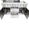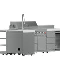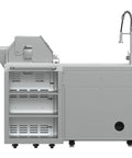 Cook, chill, and entertain with this full-featured 40 inch Outdoor Kitchen Set, featuring 304 stainless steel burners, elegant white sintered stone countertops, a cast iron griddle, side burner, rotisserie kit, beverage center, halogen lights, and a roomy 38 inch x 18 inch grill surface for serious outdoor feasts.
