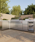 FORNO Bulnes 40-Inch BBQ, 95,000 BTU, 5 Burners, Sear & Rotisserie Infrared with Side Burner, Stainless Steel Outdoor Kitchen with 1.8 cu.ft. Beverage Center & White Sintered Stone Countertops
