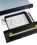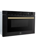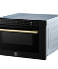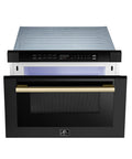 Upgrade your kitchen with the Forno Capolivera 24" Microwave Drawer, designed for effortless cooking. Featuring a 1.2 cu. ft. capacity, this black microwave with antique brass accents delivers 1,500 watts of power for fast, even heating—boiling water in just 1 minute and 50 seconds. With 11 power levels, you can precisely control cooking temperatures for everything from reheating to gourmet prep. Glass touch controls and an LED display offer a modern, user-friendly experience, while pre-programmed settings make it easy to melt butter, chocolate, and more. Enjoy versatile cooking modes, including defrost, popcorn, and beverage heating. The spacious interior accommodates 7-inch coffee mugs and 16 x 16-inch dishes, making it perfect for everyday use.