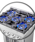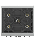 The 30 Inch Forno Capriasca French Door Gas Range blends professional style and durability with its stainless-steel design. Featuring unique french doors for extra oven access space, a rangetop delivering 100,000 BTU with 5 dual-ring brass burners, and heavy-duty cast iron grates over a recessed enamel cooking surface for easy cleaning. The 4.32 cu. ft. gas oven with 30,000 BTU output, convection fan, and 3-layer glass oven door window ensures precision cooking. Includes a LP conversion kit, 3 telescopic oven racks, wok-ring, reversible griddle, rotisserie kit, air fry basket and drip pan. Zinc-coated metal knobs with bezel rings add a touch of elegance.