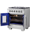 Forno Capriasca 30-Inch Freestanding French Door Gas Range, 4 Burners, Convection Oven, Energy Efficient