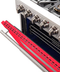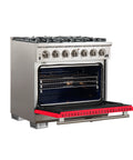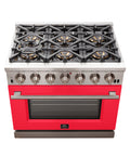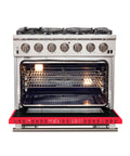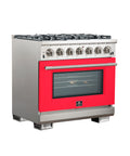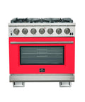 Forno Capriasca 36-Inch Gas Range, Stainless Steel, 6 Brass Burners, 120,000 BTU, Convection Oven, Energy Efficient, Red Door
