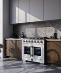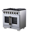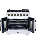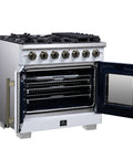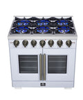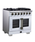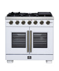 Forno Capriasca 36-Inch White Freestanding French Door Gas Range, 6 Burners, Convection Oven, Energy Efficient