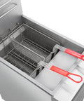 The Forno Commercial Propane Gas Deep Fryer is built for high-volume frying with a durable stainless steel construction that ensures long-lasting performance and low maintenance. Four 30,000 BTU burners deliver consistent heat, while precision thermostatic controls allow adjustable temperatures from 200°F to 400°F for reliable cooking results. Dual wire mesh baskets with cool-touch handles and a full port drain valve improve efficiency and safety during operation. Designed with a compact vertical build, adjustable legs, and a built-in backsplash, this fryer simplifies cleaning and maximizes kitchen space. The self-sufficient snap-action thermostat requires no electrical connection, making installation straightforward. For added safety, advanced overheating protection keeps operations secure. Ideal for any commercial kitchen, this fryer combines power, durability, and ease of use to increase productivity and output.