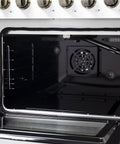 The Forno Galiano 48" French Door Gas Range in white brings professional styling and performance into your home kitchen at an affordable price. Enjoy effortless access to your oven with French doors that offer an extra 12 inches of space. The cooking surface has eight sealed burners with a total output of 107,000 BTU - one of which is a 20,000 BTU dual-ring burner that can reach a precise simmer of 1,000 BTU. Cast iron grates ensure stability over the cooktop, making spills easy to clean. This range features double gas ovens with a combined 6.58 cu. ft. capacity and 44,000 BTU, set in durable black enamel interiors for easy upkeep and clear visibility through a three-layer glass door. The 4.32 cu. ft. main oven includes a convection fan for efficient, multi-level cooking. Zinc-coated metal knobs with bezel rings are built to stay beautiful for years, adding a touch of lasting elegance to your kitchen. Four electroplated oven racks and an LP conversion kit are included.