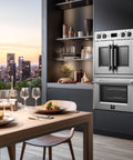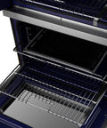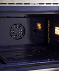 The Forno Gallico 30" Electric French-door top oven allows effortless, one-handed access, while both ovens provide a combined 7.36 cu. ft. capacity for versatile cooking. Equipped with sous vide, true convection, and multiple bake functions, it ensures precision and even heat distribution for perfect results. Stainless steel telescopic racks offer easy access, enhancing convenience and safety. Designed for efficiency, the sleek blue-speckled interior adds a stylish touch, while advanced features optimize your cooking experience.