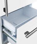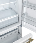 Introducing the FORNO 31 Inch Milano Espresso Bottom Freezer Refrigerator that seamlessly blends style and functionality. Its compact 31 Inch size and 17.2 cu ft capacity offer ample storage without compromising aesthetics. Two full-width freezer drawers optimize organization, while digital touch control ensures precise temperature settings and real-time monitoring. The white finish door maintains a modern look effortlessly. Swift temperature adjustment with Super Cool and Super Freeze safeguards your groceries quality. ENERGY STAR Certified for efficiency, and high-efficiency LED lighting reduces food spoilage. Antique brass handles add an elegant touch, and adjustable features, including shelves, door bins, and a full-width crisper drawer, enhance user-friendliness. Upgrade your kitchen with style, convenience, and freshness!
