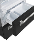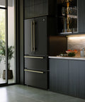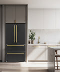Upgrade your kitchen with the Forno Moena 36" Built-In French Door Refrigerator in black with antique brass handles, designed for seamless integration and premium performance. Powered by a high-efficiency inverter compressor, it ensures energy savings, quiet operation, and precise temperature control to keep your food fresher for longer. The frost-free multi-airflow cooling system maintains consistent temperatures throughout its 19.2 cu. ft. capacity, providing optimal food preservation with adjustable shelving for versatile storage. The 12.1 cu. ft. fresh food section includes three glass shelves (two adjustable), two drawers, and generous door storage to keep groceries organized. The 7.2 cu. ft. freezer offers two pull-out drawers, a slide-out tray, and an automatic ice maker producing up to 4 pounds of ice daily, ensuring convenience for every occasion. With an intuitive LED touch panel, you can effortlessly control temperature settings and functions. Energy Star Certified, this built-in French door refrigerator operates efficiently while minimizing food spoilage with bright, high-efficiency LED lighting for superior visibility.