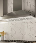 The Orvieto 60" Stainless Steel Wall Mount Range Hood delivers powerful ventilation with a 1200 CFM motor and four-speed push-button control for optimal air purification. High-grade stainless steel construction ensures long-lasting durability, while integrated noise reduction technology keeps operation quiet. Decorative crown molding adds a refined touch to any kitchen aesthetic. Bright, energy-efficient surface lights enhance visibility over your cooktop, and dishwasher-safe stainless steel baffle filters efficiently capture grease, smoke, and odors for easy cleanup and improved indoor air quality.
