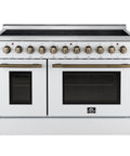 Forno Paolo 48 Inch Freestanding Electric Range in White with Antique Brass, 6.7 cu.ft, True Convection Oven, Energy Efficient