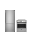 FORNO Premium 2-Piece Kitchen Bundle - Leonardo Espresso 30" Stainless Steel Range, 31" Stainless Steel Bottom Freezer Refrigerator - FBDL-003-01US