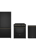 FORNO Premium 3-Piece Kitchen Bundle - Leonardo Espresso 30" Black Range, 31" Black Bottom Freezer Refrigerator, 24" Black Built-In Dishwasher - FBDL-007-02US
