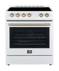 FORNO Premium 4-Piece Kitchen Bundle - Leonardo Espresso 30" White Range, 30" White Range Hood, 31" White Bottom Freezer Refrigerator, 24" White Built-In Dishwasher - FBDL-006-03US