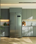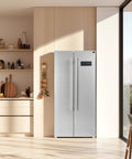 Upgrade your kitchen with the Forno Salerno 33" Side-by-Side Refrigerator, designed for functionality and energy-efficient performance. With a 15.6 cu. ft. total capacity, this frost-free refrigerator ensures hassle-free maintenance while keeping your food fresh. Equipped with an advanced temperature control system, this refrigerator maintains optimal cooling levels to preserve food and beverages. The intuitive LED touch panel offers effortless access to settings and controls. The fresh food compartment provides 9.54 cu. ft. of storage space, featuring three adjustable glass shelves, two crisper drawers, and three door bins for organized food storage. The freezer section offers 6.08 cu. ft. of capacity, complete with three adjustable shelves, two pull-out drawers, and three door bins, ensuring easy access to frozen essentials. With Energy Star Certification, the Forno Salerno delivers reliable performance while reducing energy consumption.