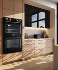 The Forno Vomero 30-Inch Double Wall Oven in Black is perfect for everything from weeknight meals to holiday feasts. With a total of 10 cu. ft., you can cook multiple dishes at once for big gatherings. The upper oven offers 6 versatile cooking modes: Bake, Convection Bake, Broil, Convection Broil, Convection Roast, and Defrost, with a 2000W broiler, 1500W bake element, and 50W convection fan for even, efficient heating. The lower oven, equipped with a 2000W broiler and 1500W bake element, is a traditional oven without a convection fan - ideal for classic roasting and baking.