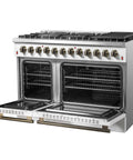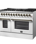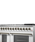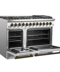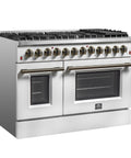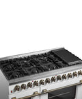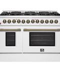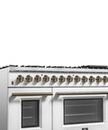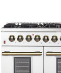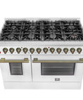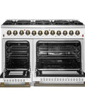 Galiano 48-inch Dual Fuel Range White & Antique Brass Design with 8 Sealed Burners 107,000 BTU, 6.58 cu. ft. double ovens & Griddle