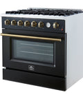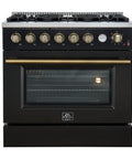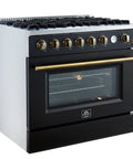 Marco 36-Inch Gas Range Black & Antique Brass Design, 6 Burners 67,000 BTU, 5.36 cu.ft. Convection Oven