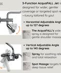 Turn even the smallest bathroom into a personal spa with the FORNO ACQUA Mini AcquaSPA Shower System, designed for apartments, guest suites, and compact layouts. This space-saving 3-in-1 system features a U.S.-patented 6-function rain shower head, 5-function ergonomic handheld, and a 10-1/2 in. AcquaFALL Waterfall Jet that offers soothing full-body coverage or targeted relief. A wide-angle adjustable body jet ensures comfort across user heights, while the powerful 2.5 GPM flow rate delivers satisfying performance. The brushed nickel finish adds timeless style, and the DIY-friendly wall-mounted design connects easily to standard plumbing with no major remodeling required, perfect for upgrading smaller spaces with spa-like luxury.