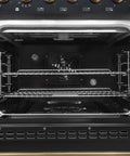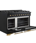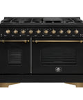 Forno Antico 48-Inch Dual Fuel Range, Black with Antique Brass Finish, 8 Burners, 94,000 BTU, 5.5 cu.ft. Double Ovens & Griddle