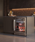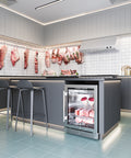 The Forno Asciutto 24" Dry Ager delivers precision aging with dual evaporators and airflow, ensuring consistent temperature and humidity control. The energy-efficient inverter compressor runs quietly while maintaining ideal conditions, while the automatic defrost system eliminates manual maintenance. UVC sterilization effectively eliminates bacteria, including resistant strains, while the charcoal filter neutralizes odors for a fresh interior. The UV-protected glass door prevents harmful light exposure, preserving meat quality. A spacious 4.41 cu. ft. stainless steel 304 interior provides long-lasting durability. Customize storage two adjustable stainless steel shelves, two stainless steel hooks, and one stainless steel hanger for efficient, organized storage. The LED light strip enhances visibility, and the smart door alarm prevents temperature fluctuations, ensuring flawless aging results.