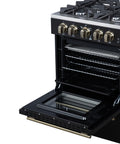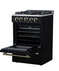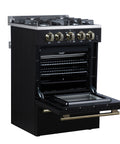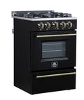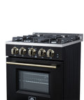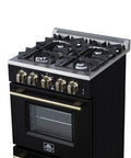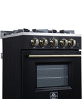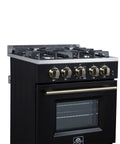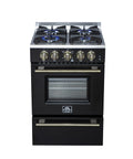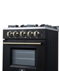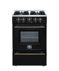 Forno Breno 24 Inch Freestanding Gas Range in Black with Antique Brass, Compact Design