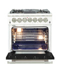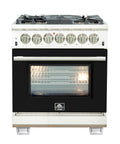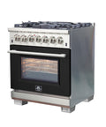 FORNO Capriasca 30-inch Dual Fuel Range Black, 5 Burners, 4.32 cu.ft. True Convection Oven