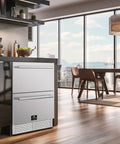The Forno Cosenza 24-Inch Built-In Indoor Outdoor Freezer Drawer with Ice Maker is designed for both indoor and outdoor use, offering versatile cooling wherever you need it. Its durable, rust-resistant stainless steel finish stands up to the elements while maintaining a clean, modern look. Interior LED lighting adds visibility and convenience, making it easy to grab a cold drink or frozen treat any time. Sleek, functional, and weather-ready, this freezer drawer is your go-to for keeping things cool in any setting.