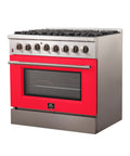 Forno Galiano 36-Inch Freestanding Dual Fuel Range, 6 Burners, Double Convection Ovens, Red Door