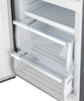 The Forno Guardia 46.8" Side-by-Side Refrigerator combines two 23.4" units to deliver an expansive 21.6 cu. ft. of total storage—ideal for large households or busy kitchens. The fresh food section offers 14.8 cu. ft. of space with six adjustable glass shelves, two deli drawers, and two humidity-controlled crispers to preserve produce and deli items. The 6.8 cu. ft. freezer features six removable drawer baskets for organized frozen storage. A Super Freeze function quickly locks in freshness while maximizing energy efficiency. With a sleek stainless steel finish, high-efficiency LED lighting, and Energy Star Certification, this refrigerator provides premium performance with reduced energy costs.