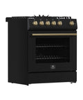 Forno Leonardo Espresso 30-Inch Black Gas Range, 5 Burners, 39,500 BTU, 5 cu.ft Convection Oven
