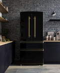 Forno Luigi 33-Inch French Door Refrigerator, 18 cu.ft, Black Finish, Antique Brass Handles, ENERGY STAR Certified