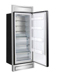 The Forno Maderno 28-inch refrigerator offers a built-in look with a decorative grill to upgrade it to 32-inch width for seamless kitchen integration. Available in black and featuring antique brass handles, it’s part of our elegant Espresso line. With 13.6 cu.ft. of capacity and a Convertible Cooling Zone, it delivers flexible storage and functionality. Total No-Frost Technology eliminates manual defrosting, while the Metal Multi-Airflow system maintains consistent freshness. Inside, 3 glass shelves and 3 drawers with silver trims maximize organization. The swing door design and intuitive electronic touch control panel enhance everyday convenience. VCM doors, a metal back panel, and Energy Star Certification ensure durability and efficiency.