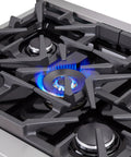The Forno Massimo 30 Inch french door dual fuel range brings professional styling and Performance into your home kitchen with its durable stainless-steel design. Unique French doors offer generous clearance of up to 12 Inch or more, ensuring effortless access to your oven. The range top has 5 sealed burners, totaling 68,000 BTU, of which one is a 20,000 BTU dual-ring brass burner that can simmer at 1,000 BTU. The heavy-duty continuous cast iron grates allow maximum stability of cookware and mobility over a recessed enamel cooking surface, which keeps spills and splashes contained and easy to clean. The 4.32 cu.ft. true convection fan oven boasts a blue enamel interior, making cleaning a breeze. The 3-layer glass oven door window retains heat and provides a clear view. With a powerful 6,300 Watts output, this oven excels in baking, roasting, and broiling. Included are 2 telescopic oven racks, wok support, griddle, air-fryer kit with drip pan, a NEMA 14-50P power cord and an LP conversion kit. Housed in a high-grade stainless steel body with illuminated zinc knobs, the Massimo offers a stylish, long-lasting addition to your kitchen