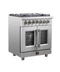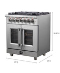 Forno Massimo 30-Inch Freestanding French Door Dual Fuel Range, 4 Burners, True Convection Oven