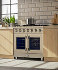 Forno Massimo 36-Inch Freestanding French Door Gas Range, 6 Burners, Convection Oven, Energy Efficient