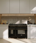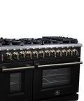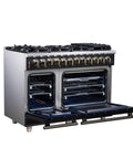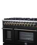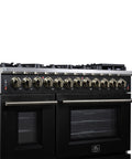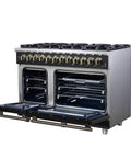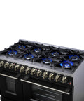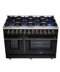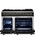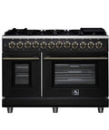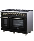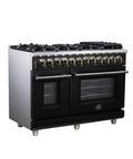 Forno Massimo 48 Inch Freestanding Dual Fuel Range in Black with Antique Brass Accessories, 8 Burners, 6.58 cu. ft. Convection Oven