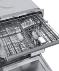 The Rivestito Panel Ready Dishwasher is designed to blend seamlessly into your kitchen cabinetry while delivering powerful cleaning performance. With six wash cycles including Auto, Normal, Heavy, Delicate, Express, and Rinse, it handles everything from everyday dishes to tough cookware. The stainless steel interior enhances durability and ensures hygienic washing, while adjustable racks, fold-down tines, and a removable silverware basket maximize loading flexibility. Energy Star certified, this built-in dishwasher features condensation and fan-assisted drying, heated dry options, and a top-control touch panel with LED display for modern convenience. A 1–24 hour delay start option, leak protection, and a removable filter trap add to its efficiency and reliability.